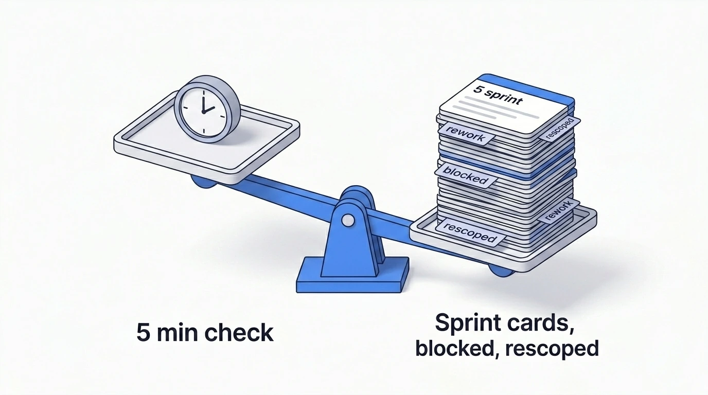 Il costo non è solo nel lavoro di rifacimento. È nell'erosione della fiducia. Nell'obiettivo dello sprint che diventa silenziosamente fittizio. Nel PM che deve spiegare agli stakeholder perché il team ha consegnato qualcosa già obsoleto dal primo giorno.