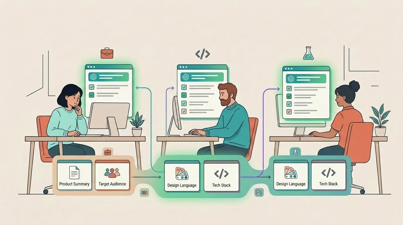 Rozwiązaniem nie jest lepsza technika promptowania. Jest nią zbudowanie wielokrotnie używalnej warstwy kontekstu — zwięzłego, rzetelnego opisu świata twojego produktu — i dołączanie go przed każdym promptem. Piszesz raz. Używasz wszędzie. Model przestaje zgadywać i zaczyna pracować z tymi samymi ograniczeniami, z którymi pracuje twój zespół.